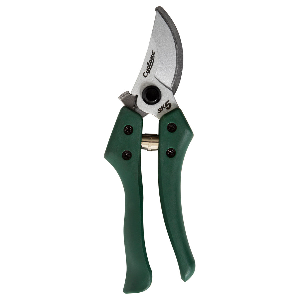 The Cyclone Quick Release Nylon Bypass Pruner is ideal for pruning live & green stems. Featuring a quick release locking mechanism allowing the user to squeeze the pruner open for quick, easy pruning. Bypass action ideal for live and green wood. SK5 carbon steel blades. Non-stick coated cutting blade. Strong glass-filled nylon body. Ambidextrous quick-release lock. Squeeze to open. Cutting capacity 20mm. Lifetime guarantee.